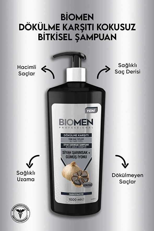 Biomen Professional Siyah Sarımsak ve Gümüş İyonu Dökülme Karşıtı Şampuan 1 LT