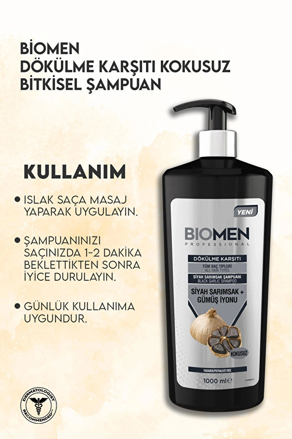 Biomen Professional Siyah Sarımsak ve Gümüş İyonu Dökülme Karşıtı Şampuan 1 LT